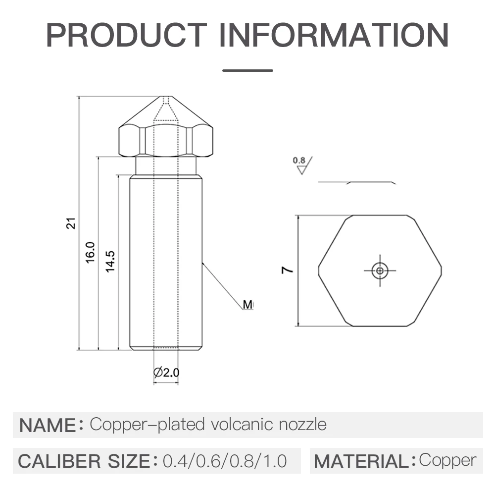 3D Printer Parts NF-V6 Plated Copper Volcano Nozzle 0.4mm 0.6mm 0.8mm M6 For V6 Volcano J-head Hotend customize