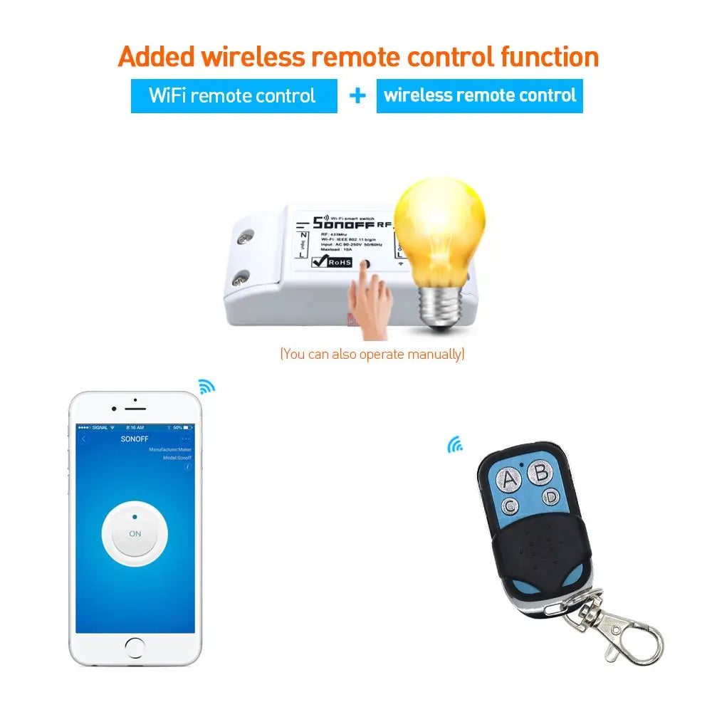 Sonoff 433 MHz 4-Channel Wireless RF Controller 4 Buttons Sonoff Switch Accessories Electric Remote Key Fob Control