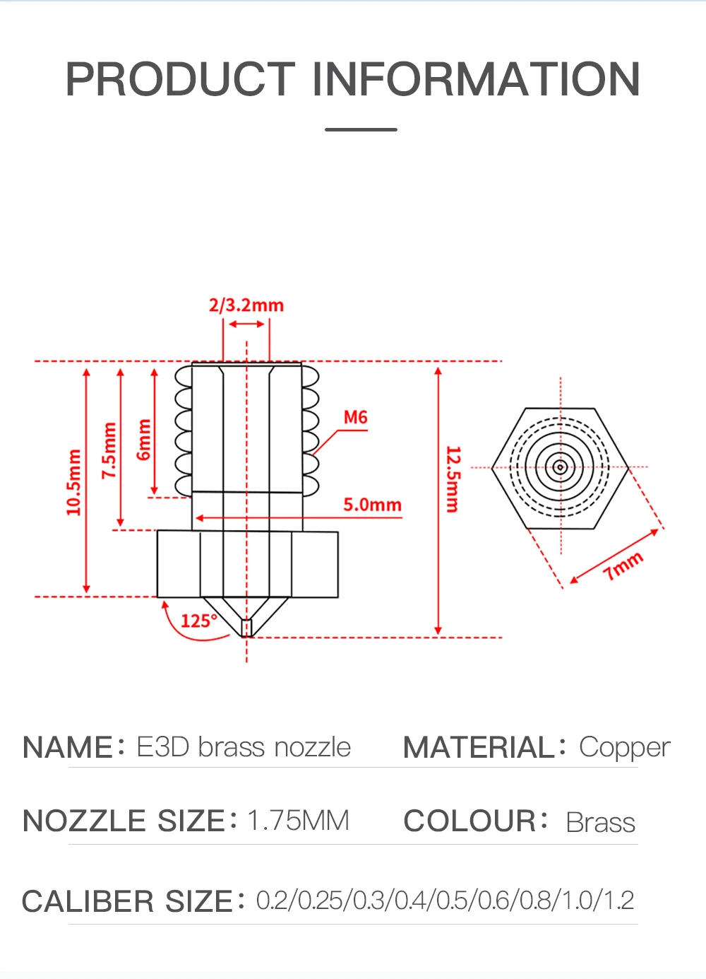 5pcs E3D M6 Threaded Nozzle Full Metal 0.2/0.3/0.4/0.5/0.6mm Optional for 1.75/3.0mm Filament V5 V6 Hotend Extruder 3D Printer customize