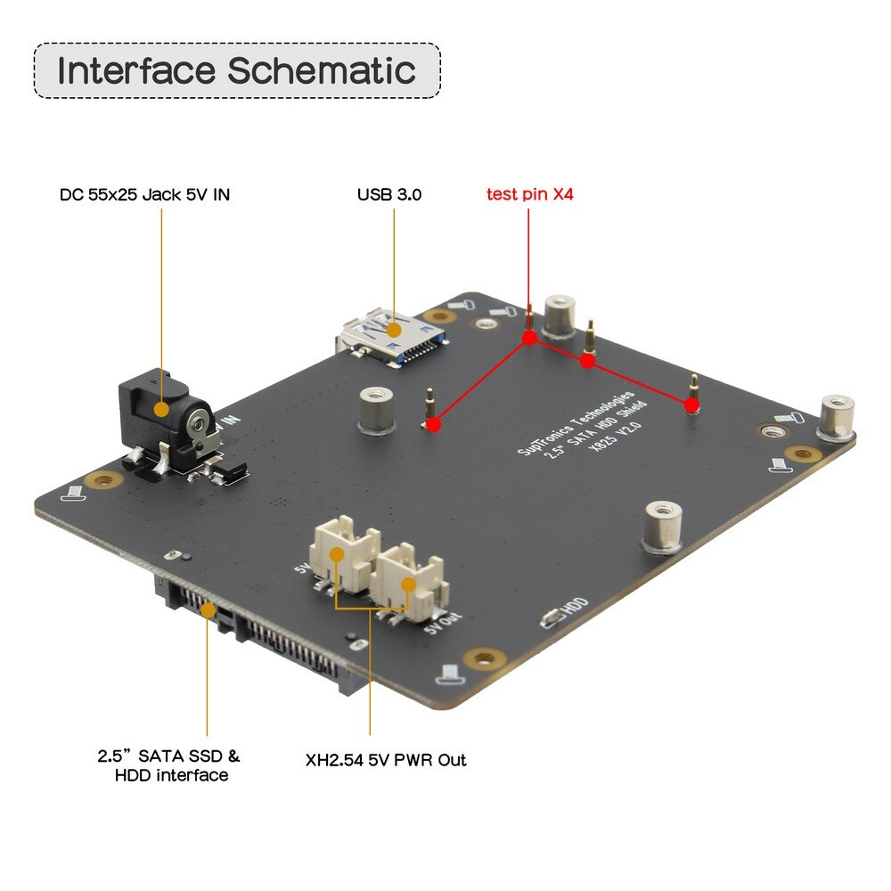 The X825 expansion board provides a complete storage solution for newest Raspberry Pi 4 Model B 8gb/4gb/2gb, it supports up to 4TB 2.5-inch SATA hard disk drives (HDD) / solid-state drive (SSD). Only 2.5 inch SATA interface HDD/SDD hard disk is suitable for X825 Board;