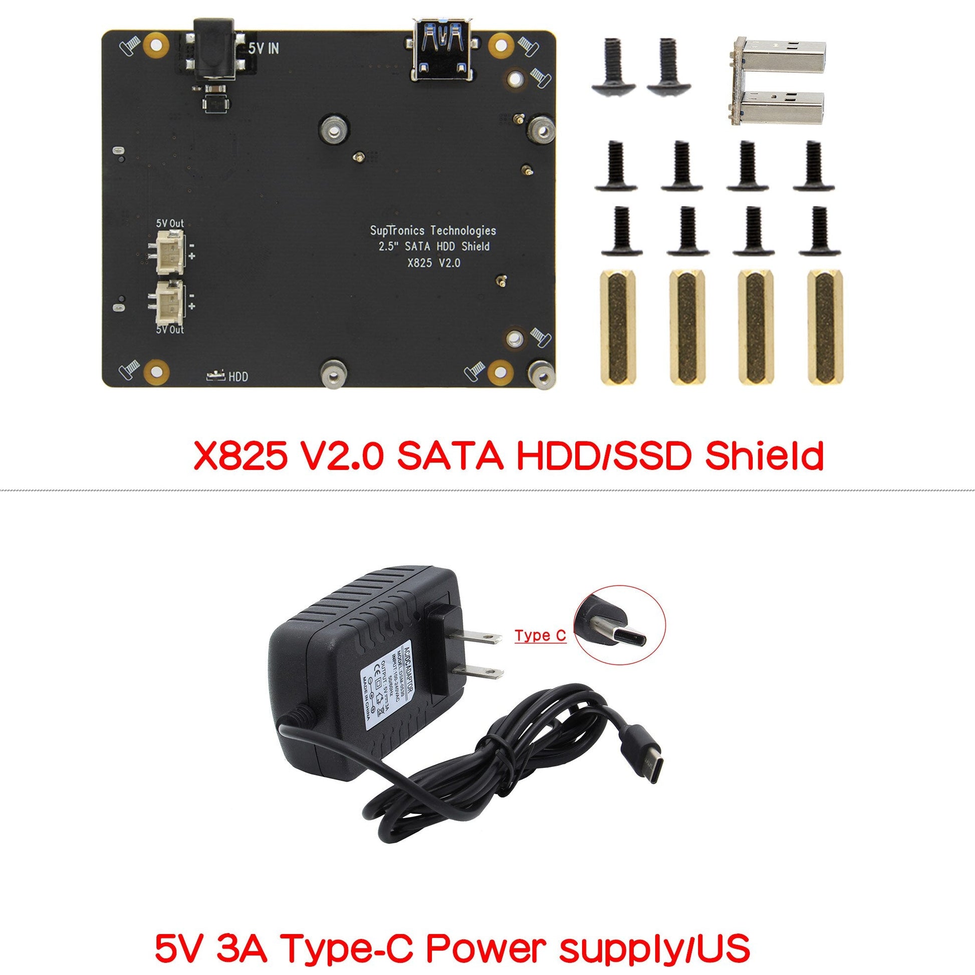 5V 3A Type-C Power Adapter + X825 V2.0 2.5 inch SATA HDD/SSD Board for Raspberry Pi 4 Model B
