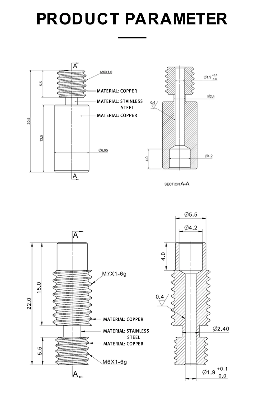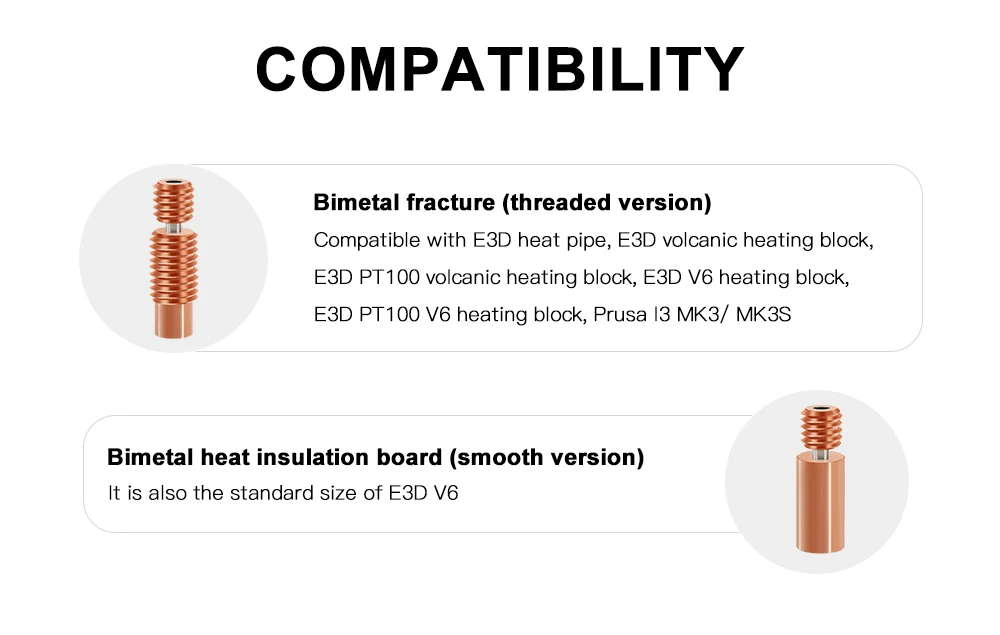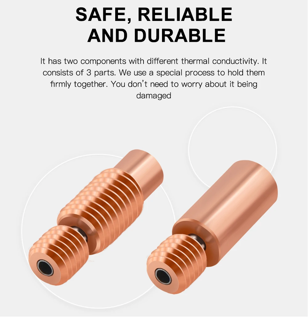 All-Metal NF V6-Crazy Heat Break Copper & Stainless Steel 3D Printer Nozzle Throat For 1.75mm E3D V6 HOTEND Heater Block