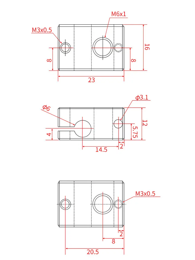 Aluminium PT100V6 Official version Heat Block For E3D V6 J-head Extruder HotEnd accessory 3D Printer Parts 23*16*12mm