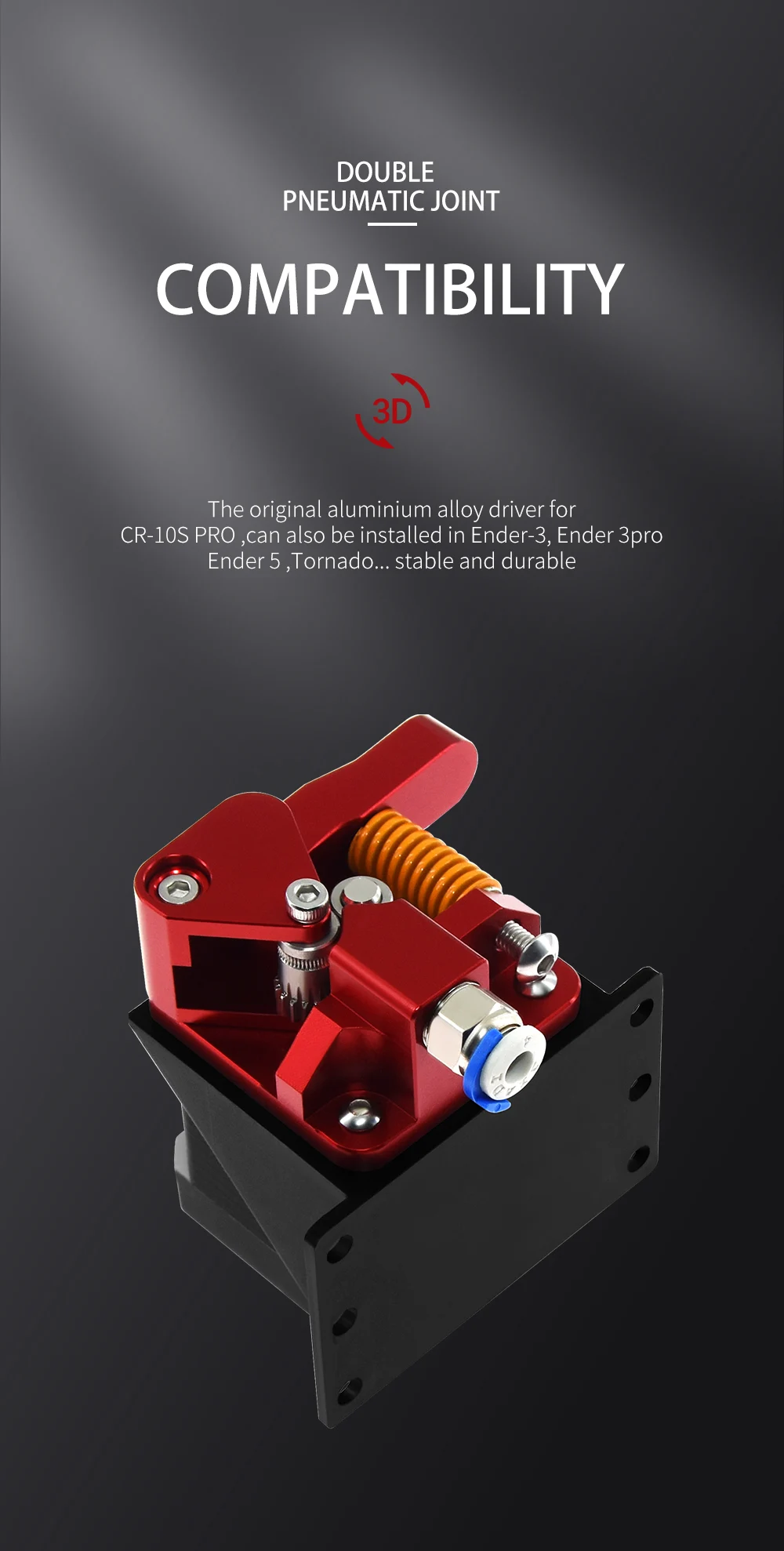2. The original aluminum alloy driver is supplied for CR-10S PRO. It can also be installed for Ender-3, Tornado... stable and durable.
