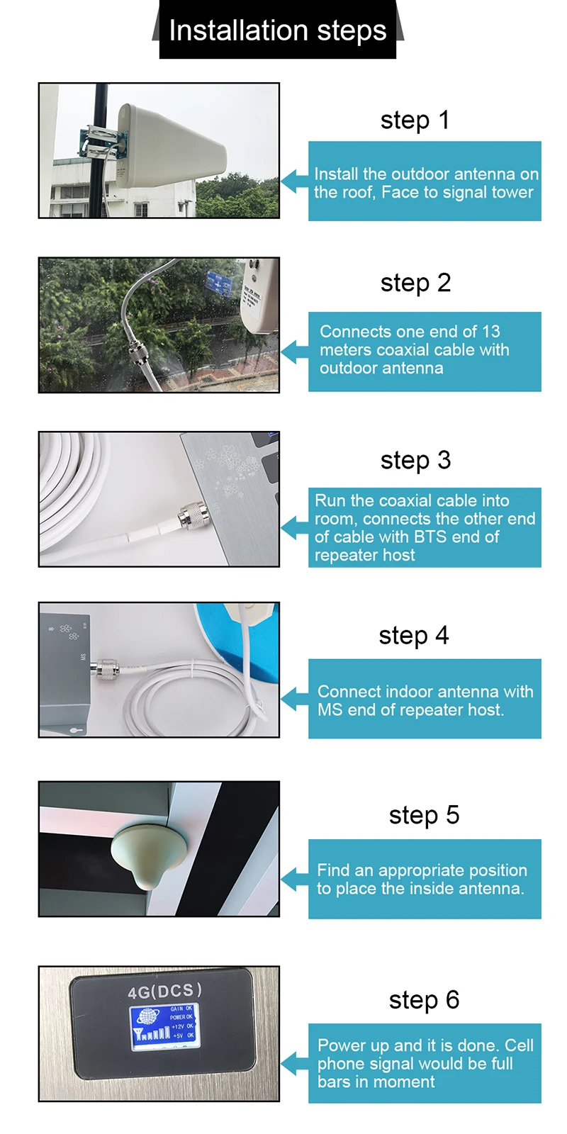 Note :when outdoor antenna and indoor antenna are separated not enough, then it will be self-oscillation. yourphone will not get any signal.