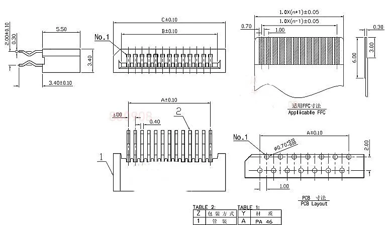 Custom 1.0mm FPC/FFC Connector LCD Flexible Flat Cable Socket Double Row DIP Straight Pin Type 4 6 8 10 12 14 18 20 22 24 30 Pin Manufacturer