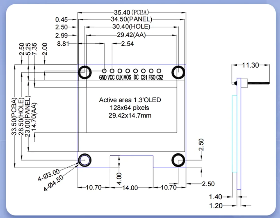 Control chip: SH1106 (if customers need SSD1306, please contact customer service)
