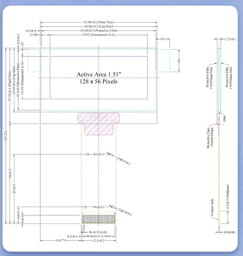 Custom 1.51-inch 1.54-inch OLED 12864 display screen transparent screen ssd1309 24PIN
