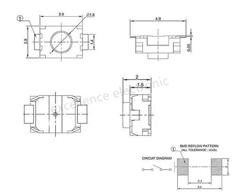 Custom 100PCS 3*4*2.0MM Micro Switch Momentary SMD Button Switch 3X4X2.0MM Manufacturer