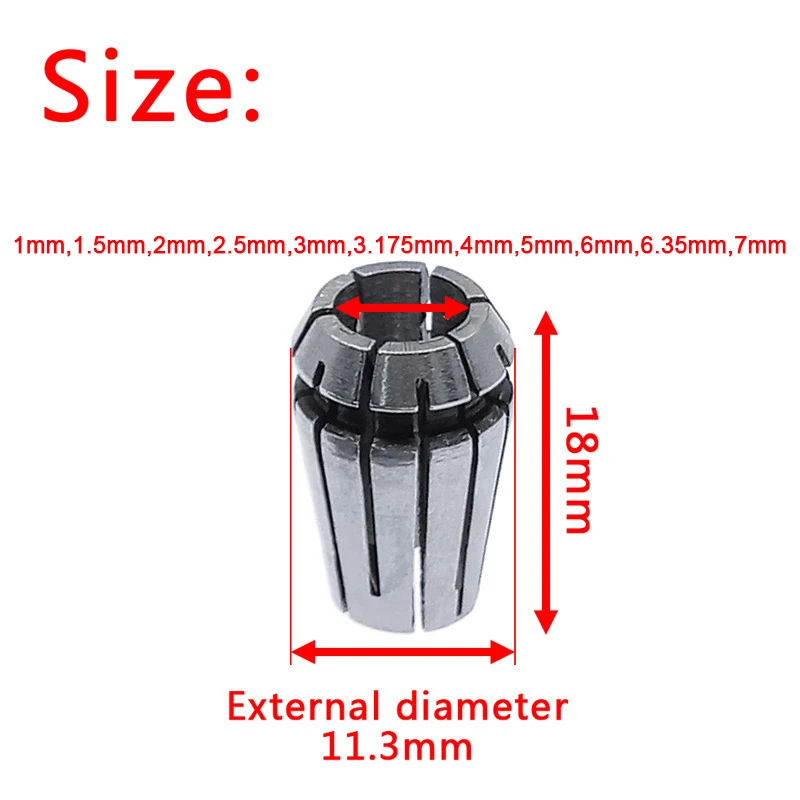 ER11 collet set (1mm/1.5mm/2mm/2.5mm/3mm/3.175mm/4mm/5mm/6mm/6.35mm/7mm)