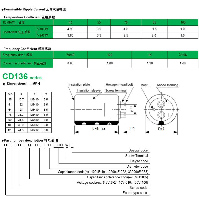 Custom 100V10000UF 50*80MM 10000UF 100V Aluminum Screw Audio Filtering Electrolytic Capacitor 105 CD136 Manufacturer