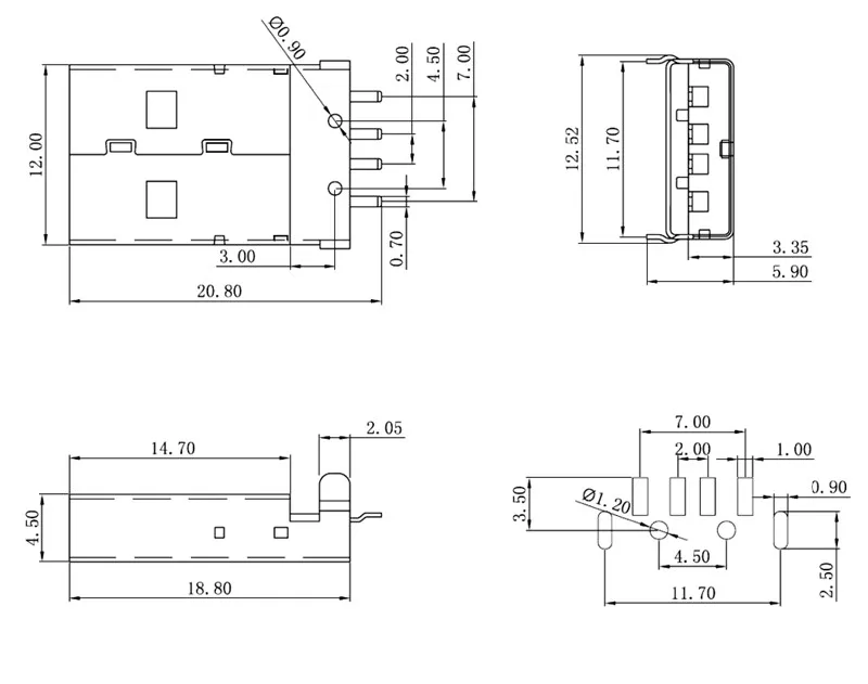 Custom 10Pcs/lot USB 2.0 Male A Type USB PCB Connector Plug 180 degree SMT SMD Male USB Connectors Manufacturer