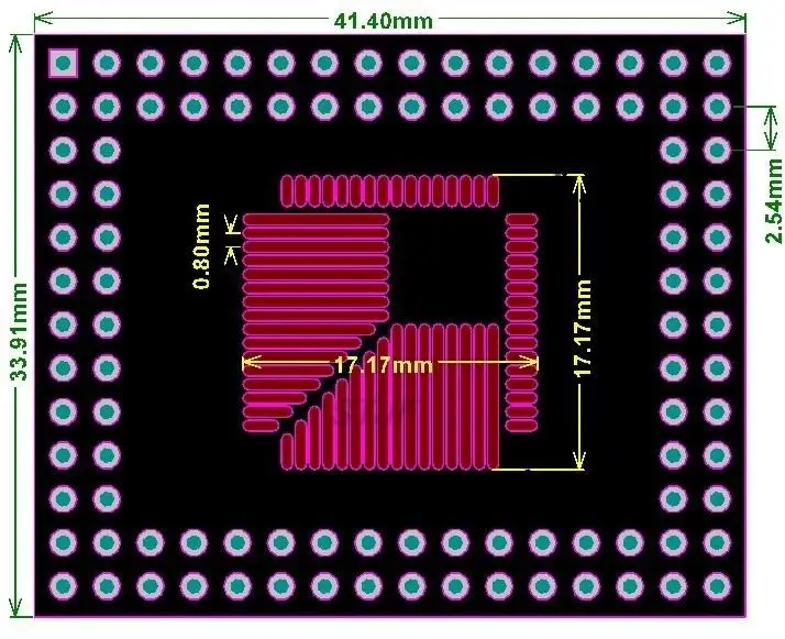 Negative: Pin spacing is 0.5mm, suitable for converting QFP, TQFP, LQFP, FQFP and other packages compatible with 32pin~100pin into DIP in-line