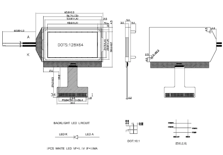Custom 12864B dot matrix LCD screen size 57mm × 39mm 12864 LCD screen