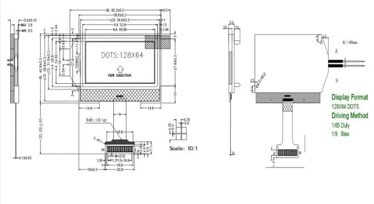 Custom 12864B5 COG dot matrix LCD module display screen blue/green