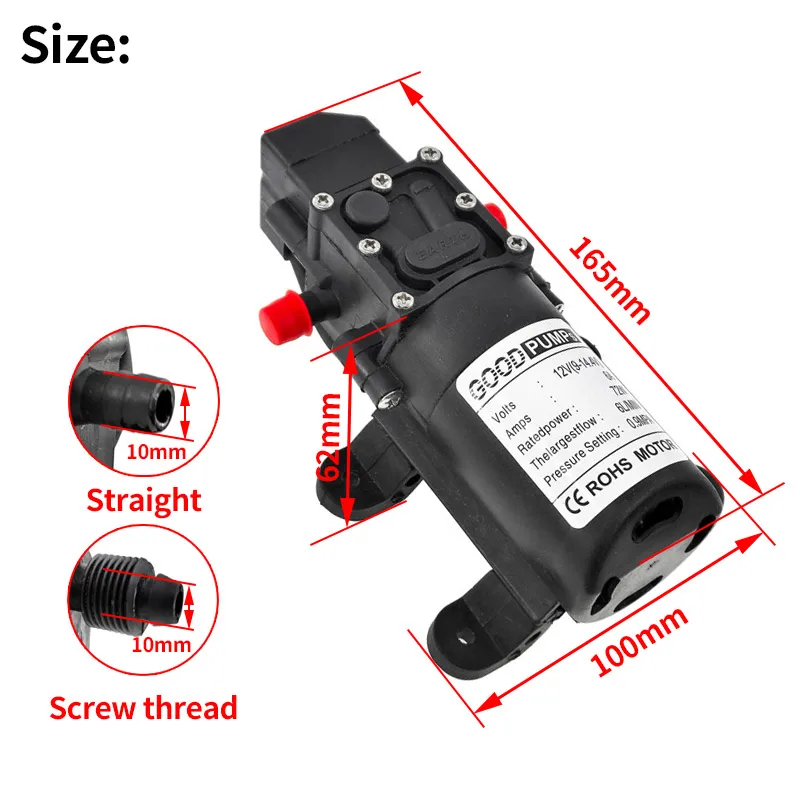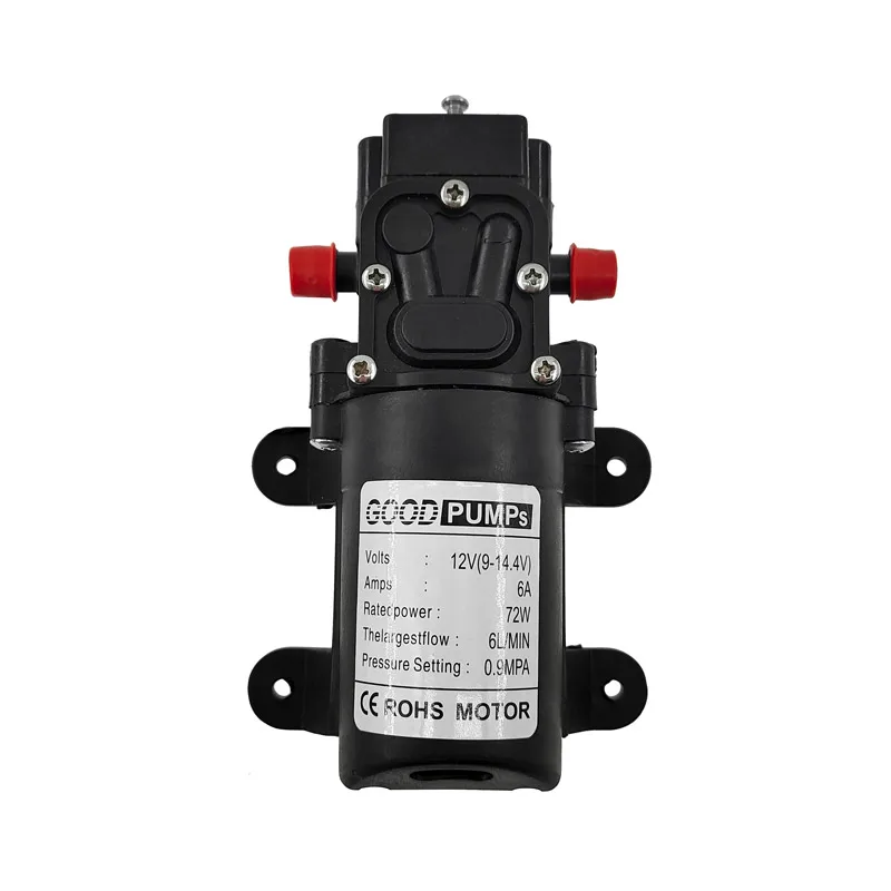 Custom 12VDC 72W Good Pumps Micro Electric Diaphragm Reflux Water Pump Automatic Switch 6L/Min High Pressure Car Washing Spray Manufacturer