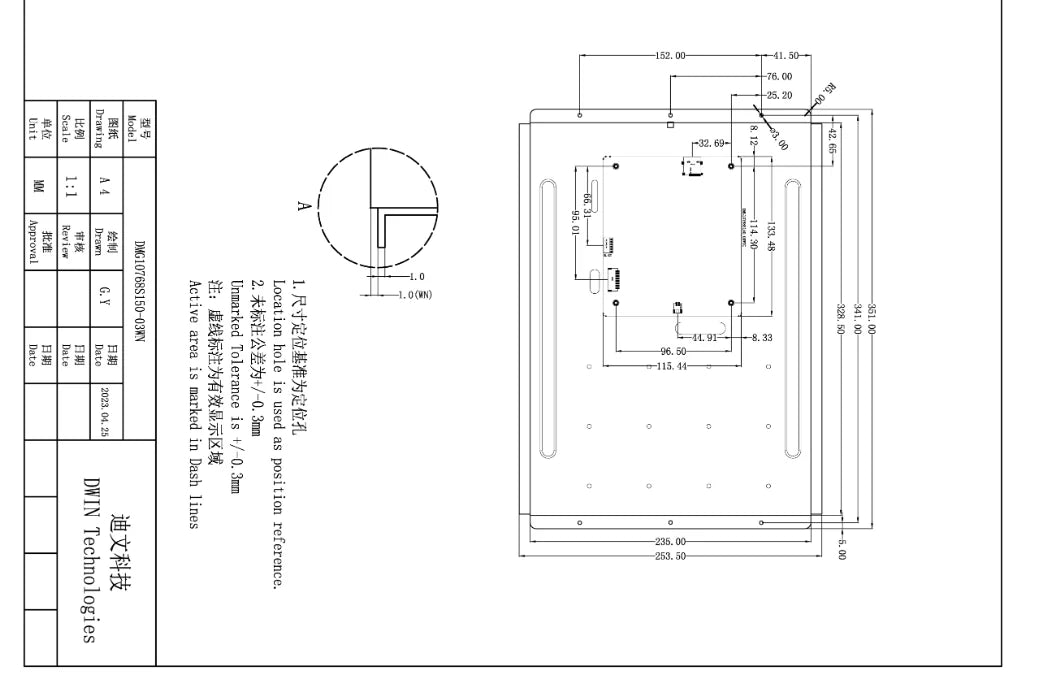 Custom 15 inch high reliability intelligent serial port screen DMG10768150_03W UV/AG touch optional