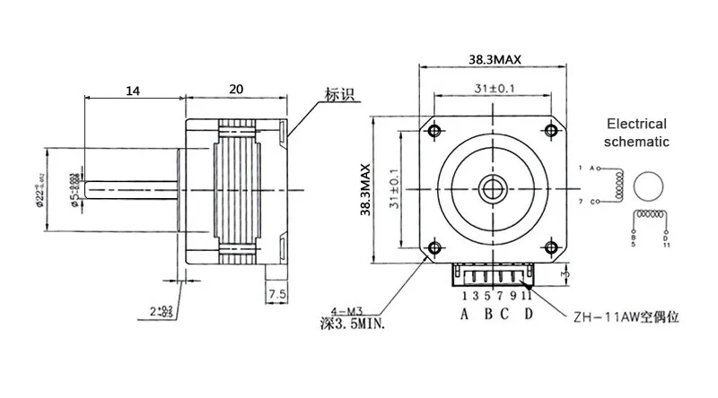 Outgoing mode: two-phase four-wire (yellow A+ , grey A- , red B+ , green B-) plug-in type