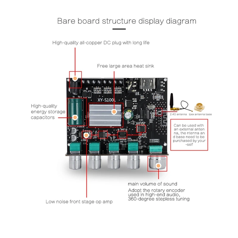 1 x XY-S100L Bluetooth 5.0 Subwoofer Amplifier Board