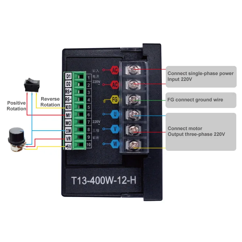 Custom 1PCS frequency converter add RS485 400W 750W three-phase motor driver MCU T13-400W-12-H single phase input Manufacturer