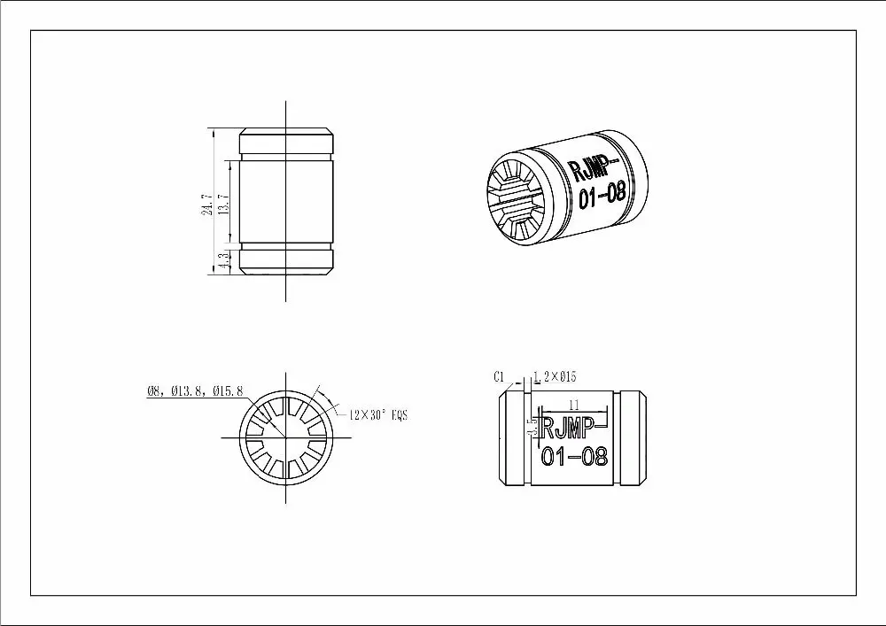 Custom 1pcs RJMP-01-08 Solid Polymer LM8UU Linear Bearing 8mm Shaft CNC Plastic Bushing Reprap Medel For Prusa i3 3D Printer Parts Manufacturer