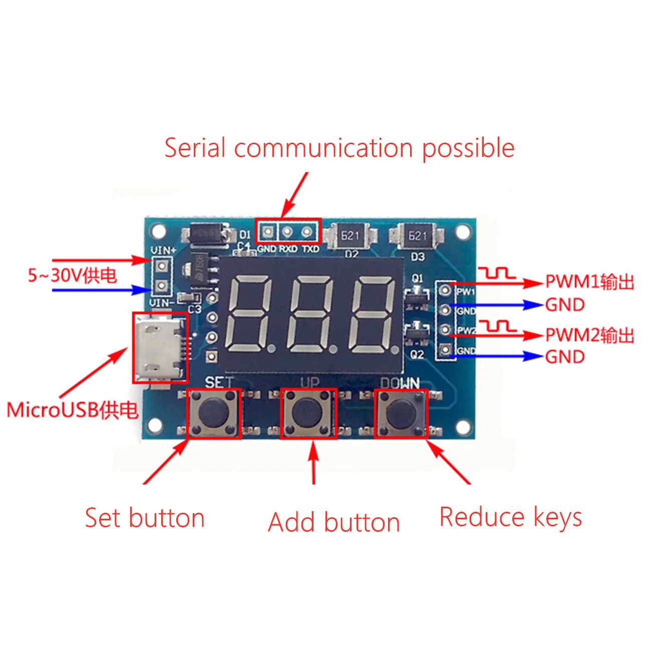 1. Two independent PWM outputs, the frequency and duty cycle can be set separately;