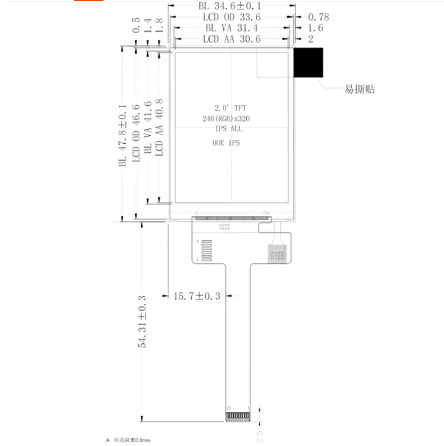 Custom 2.0 inch LCD display screen 240 * 320 full view IPS 21PIN capacitive touch SPI interface ST7789V