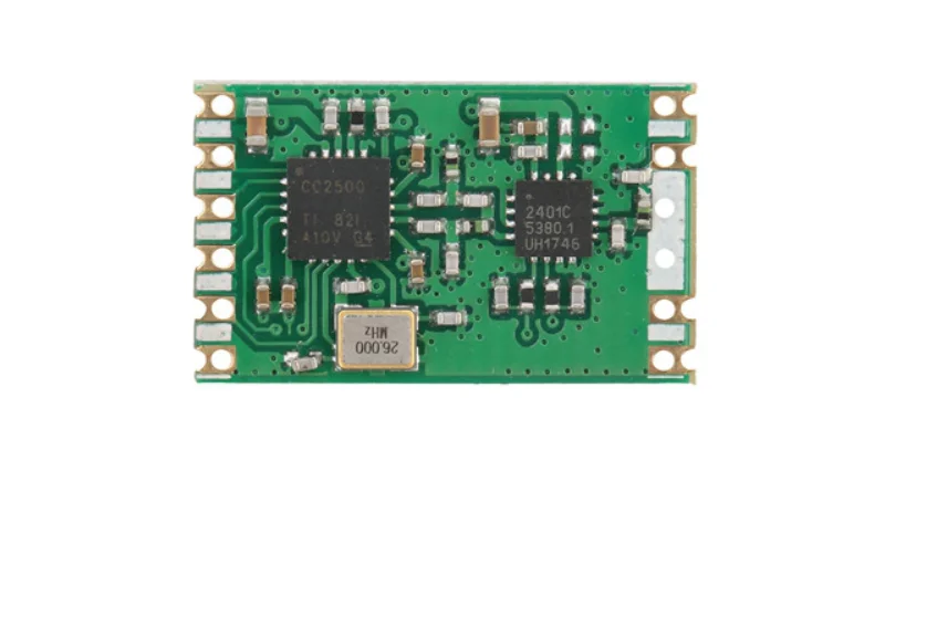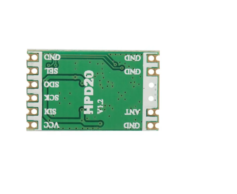 HPD20 high-power wireless transceiver module, using TI CC2500 RF transceiver chip and integrated power amplifier and low-noise amplification RF front-end chip design, operates in the 2.4GHz ISM frequency band, integrates 26MHz crystal oscillator, half duplex transceiver module, power up to+20dBm, reception sensitivity as low as -114dBm, data transmission rate of 500kbps, 1uA sleep current. It has good anti-interference ability and can achieve long-distance wireless data transmission and reception. The module has a volume of 19.5 * 12 * 1.8mm, making it easy to embed into portable products.