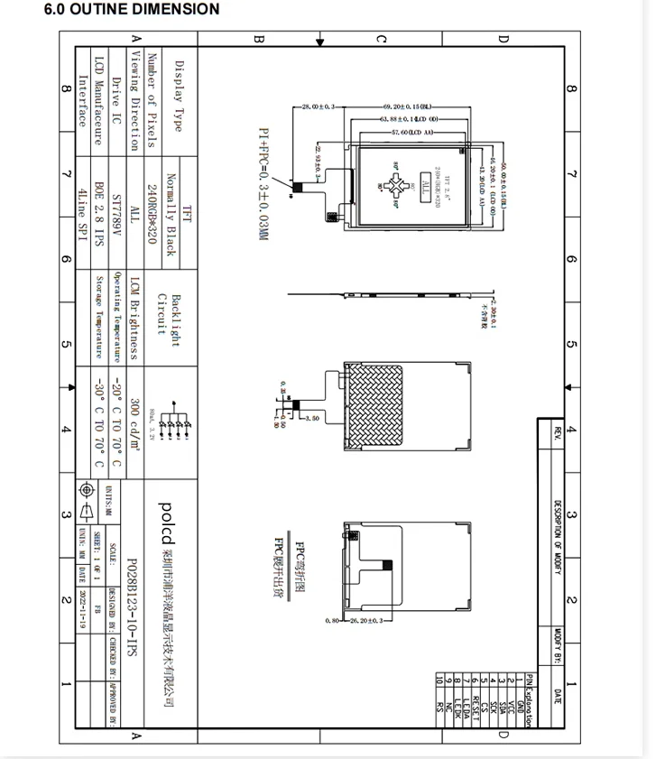 Custom 2.8 inch IPS full angle TFT color LCD display screen with 10PIN SPI serial port 240 * 320 ST7789V No touch/capacitive touch