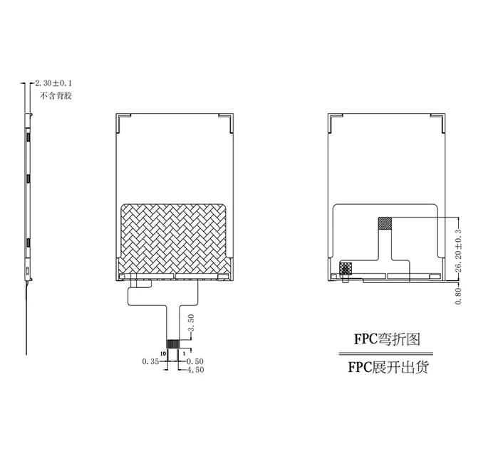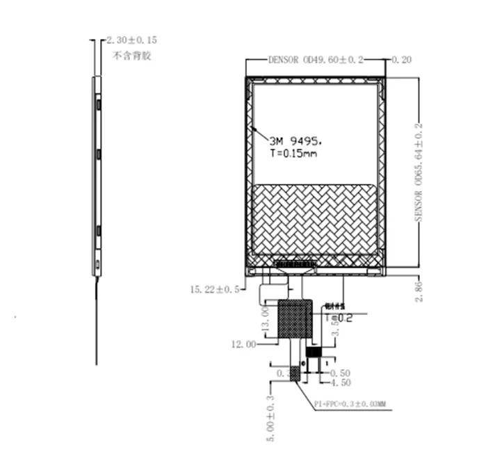 External dimensions: 50.00 (width) x 69.20 (length) x 2.30mm (thickness) / capacitive touch 50.00 (width) x 69.20 (length) x 3.10mm (thickness)
