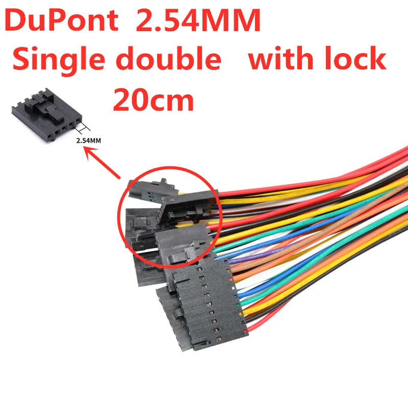 Custom 20CM Dupont 2.54MM Cable 2-10Pin with Locking Terminal Cable Single Head Double Head 24awg MX2.54 Electronic Cable Manufacturer