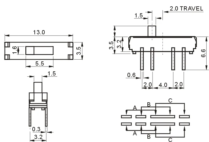 Custom 20Pcs Toggle Switch 8 Pins 3 Files MSS23D18 Vertical Dip 2P3T Micro Switch Manufacturer