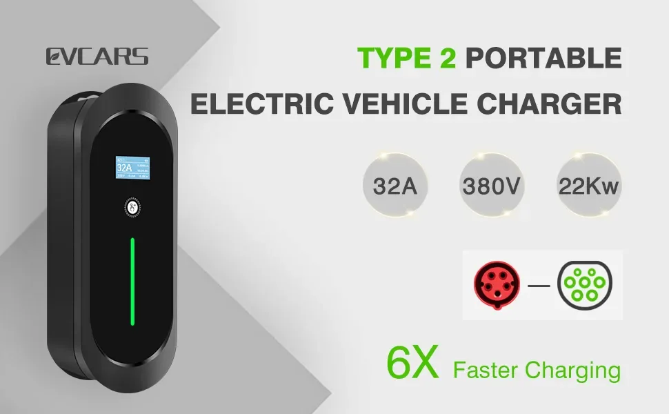 22KW 32A 3 Phase EV Charger EVSE Mobile Wallbox Level 2 Electric Car Charger