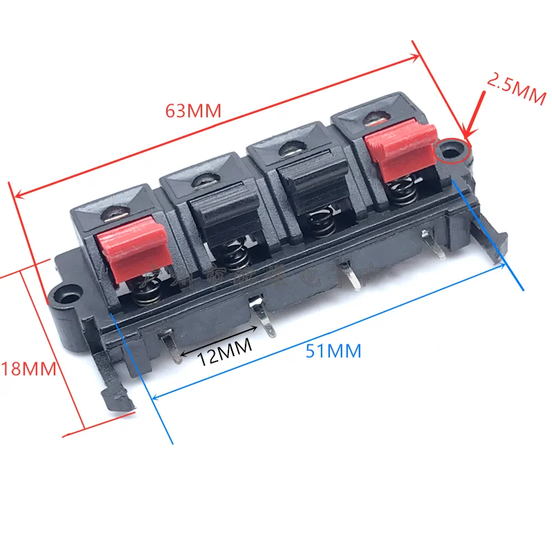 Custom 2PCS 2 Positions 4 Poles Connector Terminal Push In Jack Spring Load Audio Speaker Terminal Breadboard Clip Manufacturer