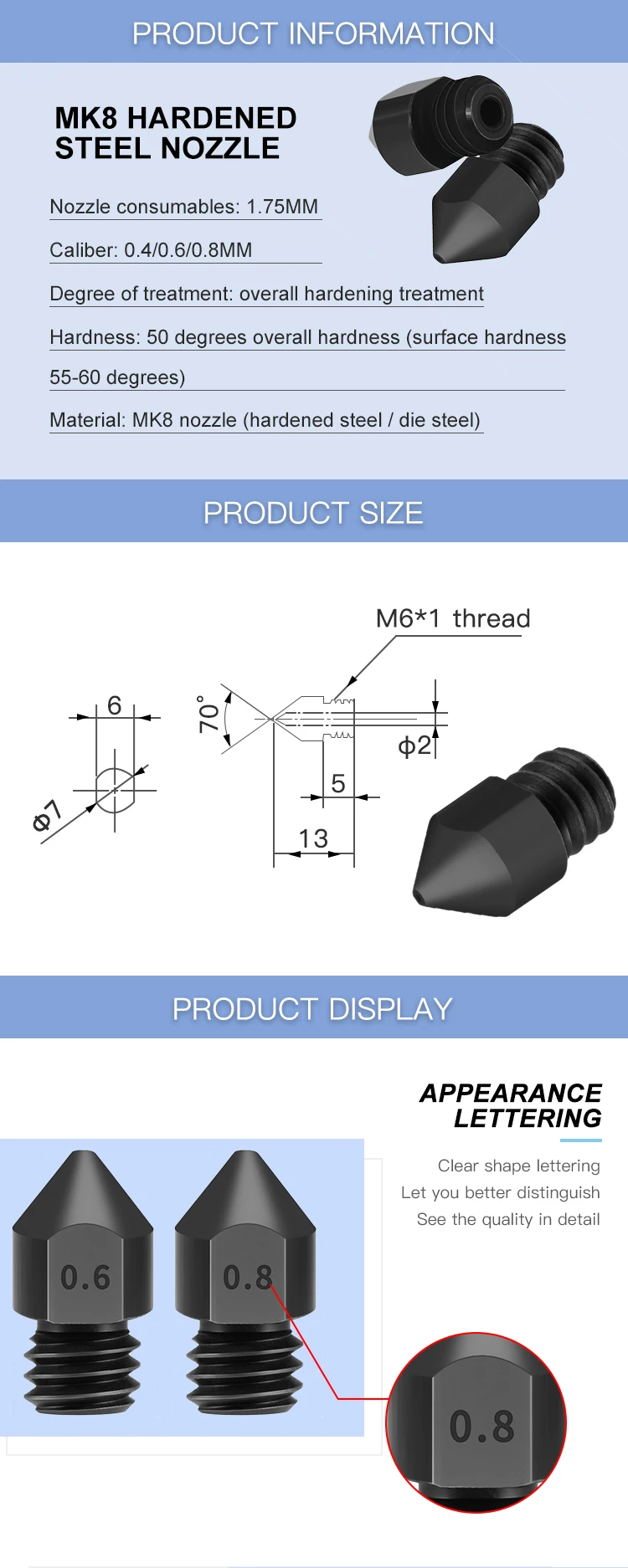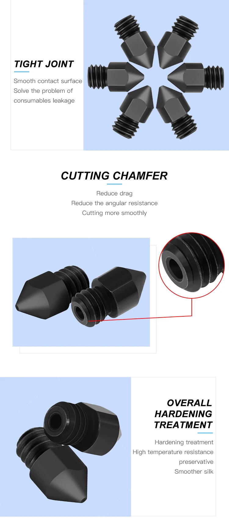 Custom 2Pcs 3D Printer Nozzle MK7 MK8 Nozzle Super Hard Steel Mold Corrosion-Resistant Extruder Threaded 1.75mm Filament For Ender 3 Manufacturer