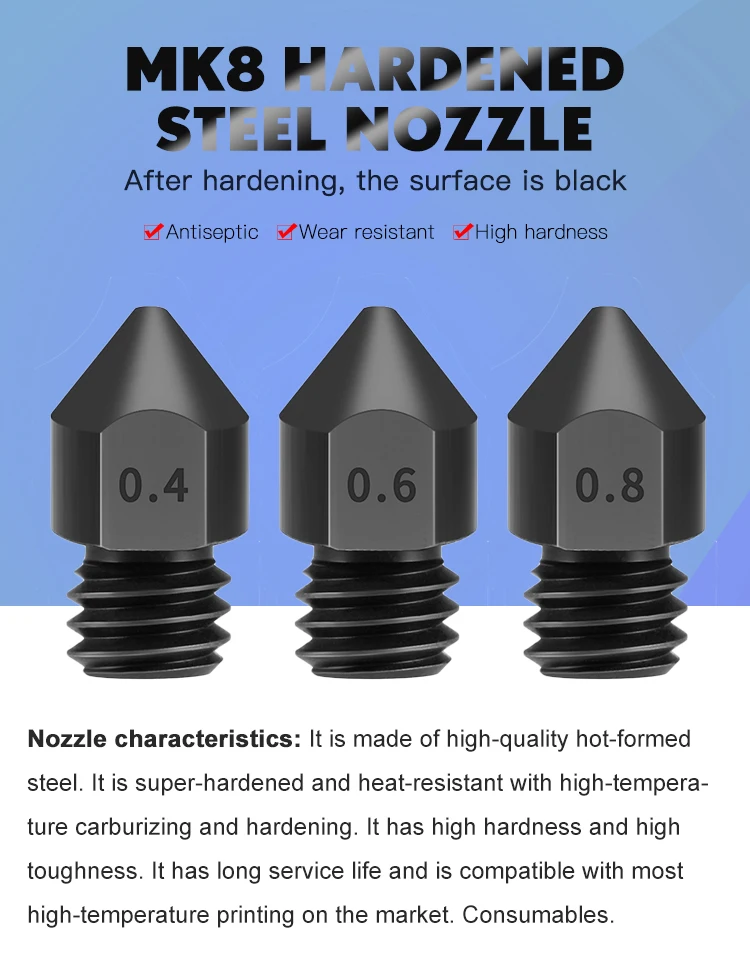 2Pcs 3D Printer Nozzle MK7 MK8 Nozzle Super Hard Steel Mold Corrosion-Resistant Extruder Threaded 1.75mm Filament For Ender 3