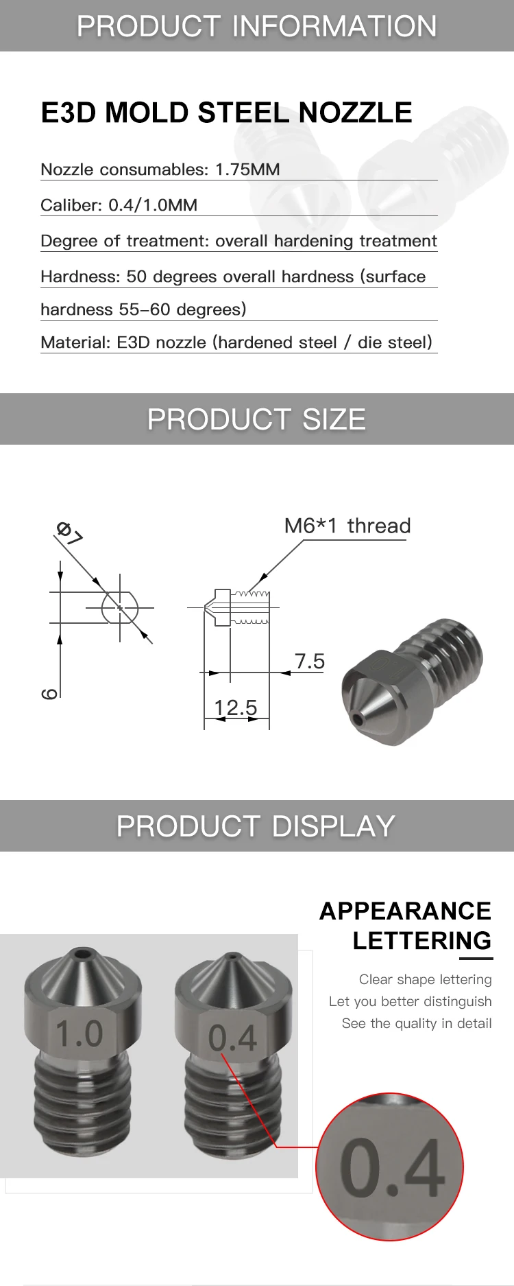 Custom 2Pcs E3D Hardened Steel Nozzle V6 Die Steel Nozzle E3D Extruder Hotend 1.75mm Filament For 3D Printer Prusa I3 Hothead Manufacturer
