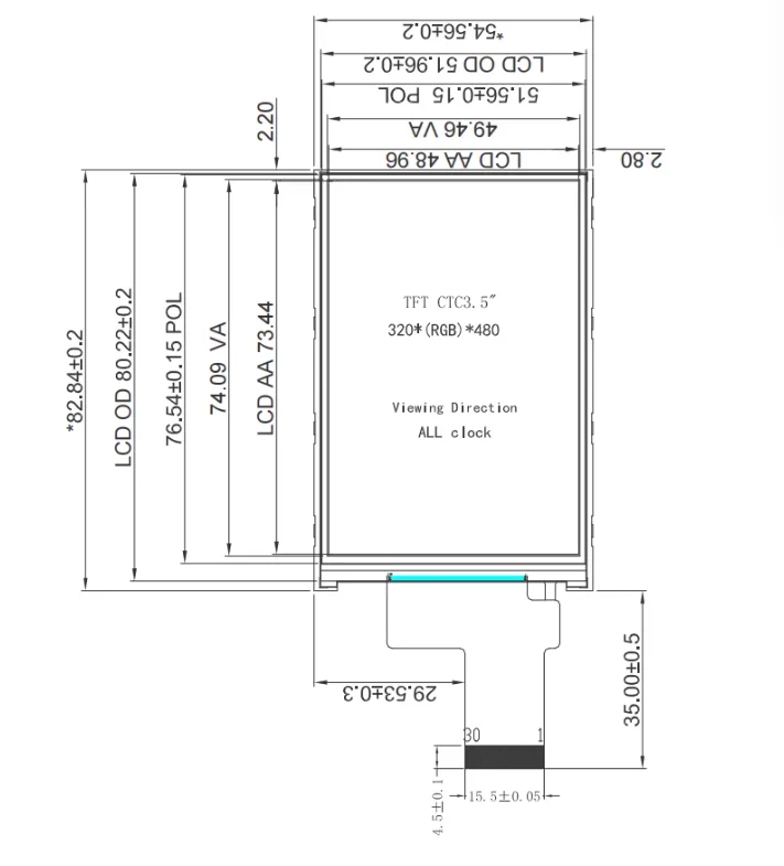 Custom 3.5 inch 30PIN TFT LCD display screen 320*480 full view IPS capacitive touch SPI interface ST7796S