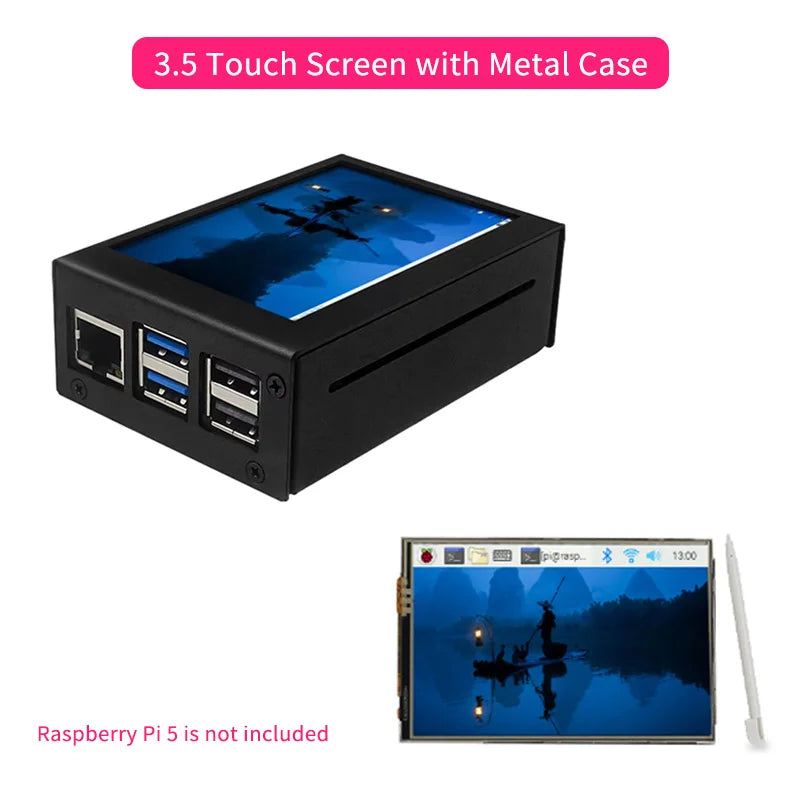 Custom 3.5 Inch Touch Screen for Pi 5 480*320 LCD Display Optional Metal ABS Case Aluminum Active Cooler for Pi 5