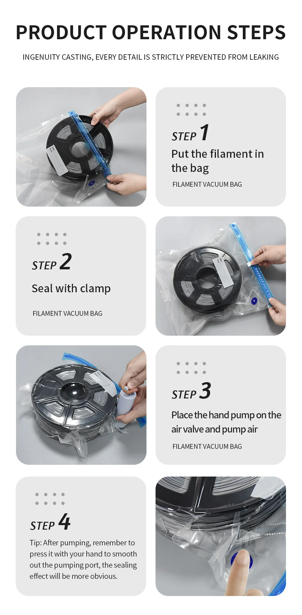 Custom 30 Bag 3D Printer PLA/ABS/TPU Filament Storage Vacuum Bags Filament Dryer Safekeeping Humidity Resistant For 3D Printer Parts Manufacturer