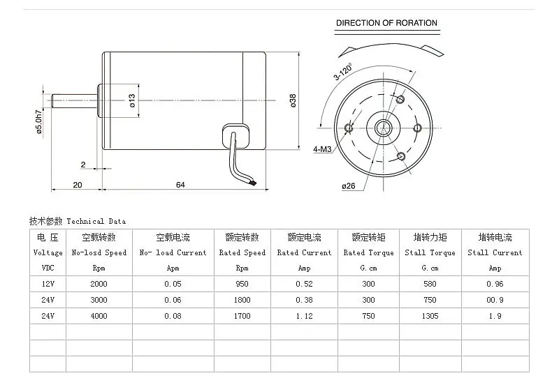 Custom 38MM tubular DC motor 12V 24V motor 2000RPM3000RPM4000RPM5000RPM6000RPM7000RPM 7W/8W Manufacturer