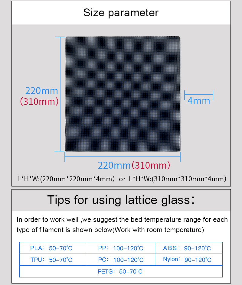 3D Printer Accessories Ultrabase Heatbed Platform Square Build Surface Glass Plate Lattice For Ender 3 CR10 MK3 Hotbed Sticker