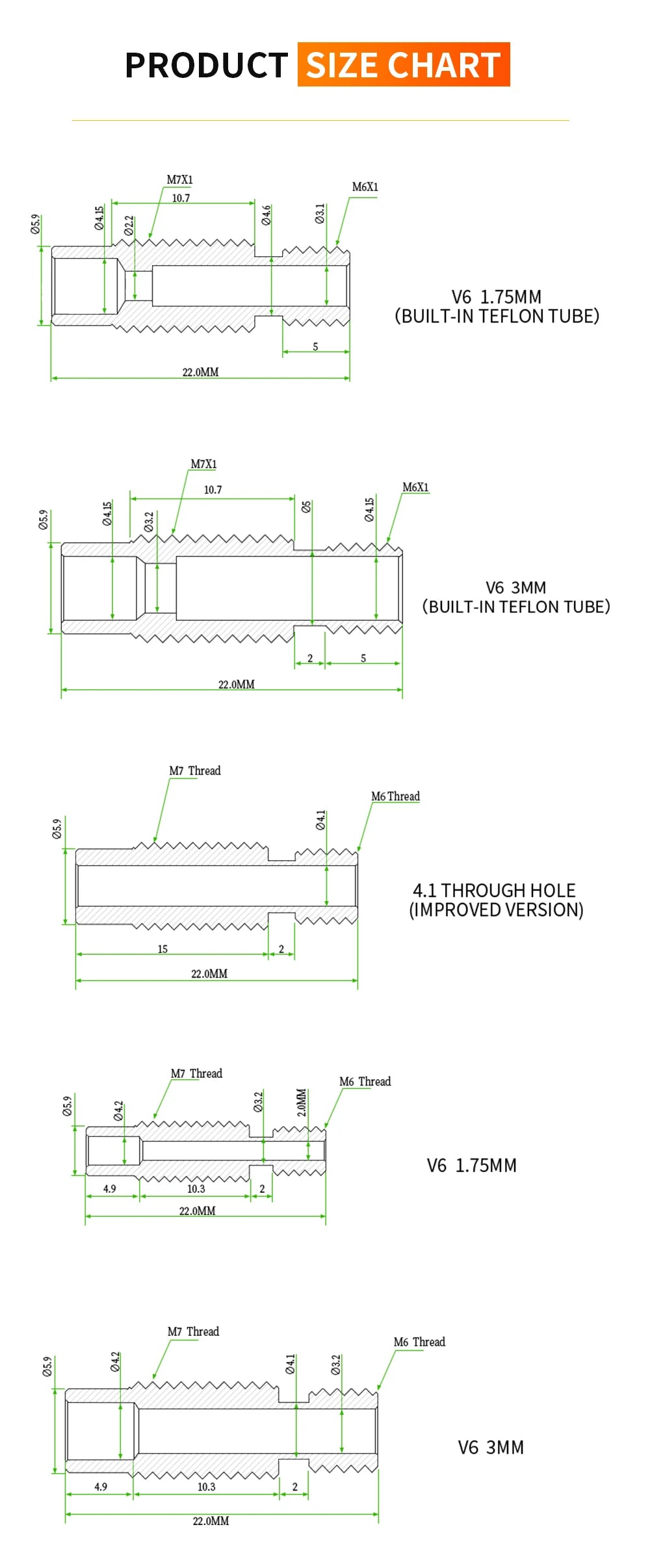 1.75/3.0mm With PTFE Tube, 1.75/3.0/4.1mm Without PTFE Tube