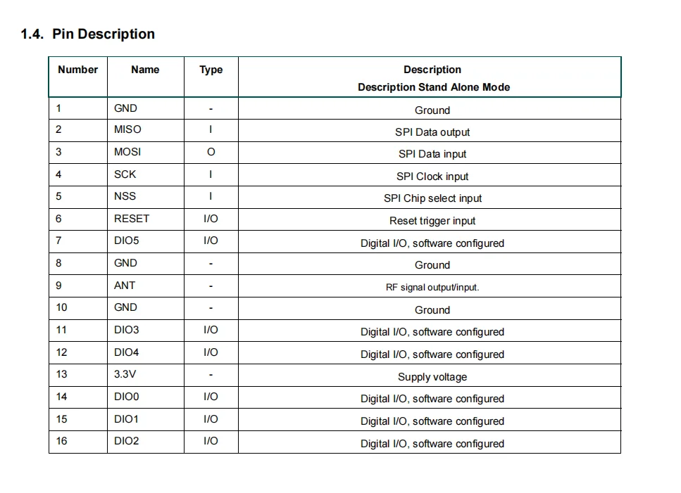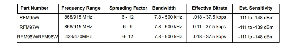Table 48 RFM95/96/97/98(W) Device Variants and Key Parameters