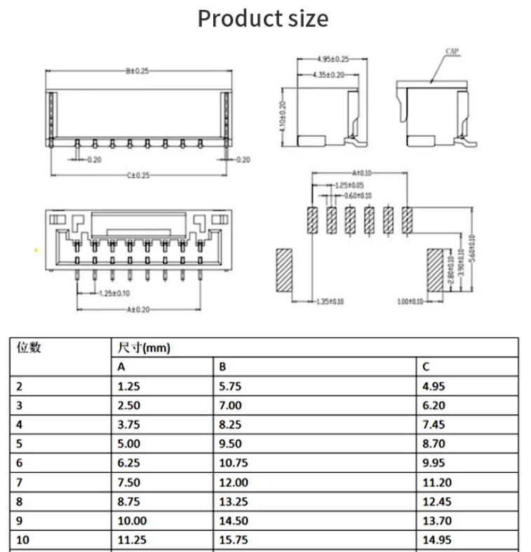 SMD Horizontal Type Socket : 2P*10PCS, 3P*10PCS, 4P*10PCS, 5P*10PCS