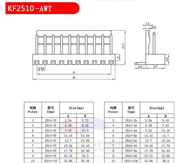 50pcs/lot KF2510 Male Connector Right Angle Pin Header 2AW 3AW 4AW 5AW 6AW 7AW 8AW 9AW 10AW 2510 2.54MM