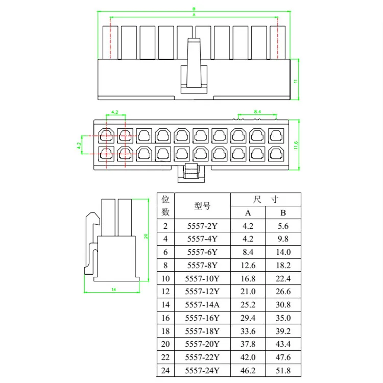 Custom 5557-R 5557 4.2mm Black Automotive wiring harness connector male 2 - 24 pin for PC/computer graphics card PCI-E Power Manufacturer
