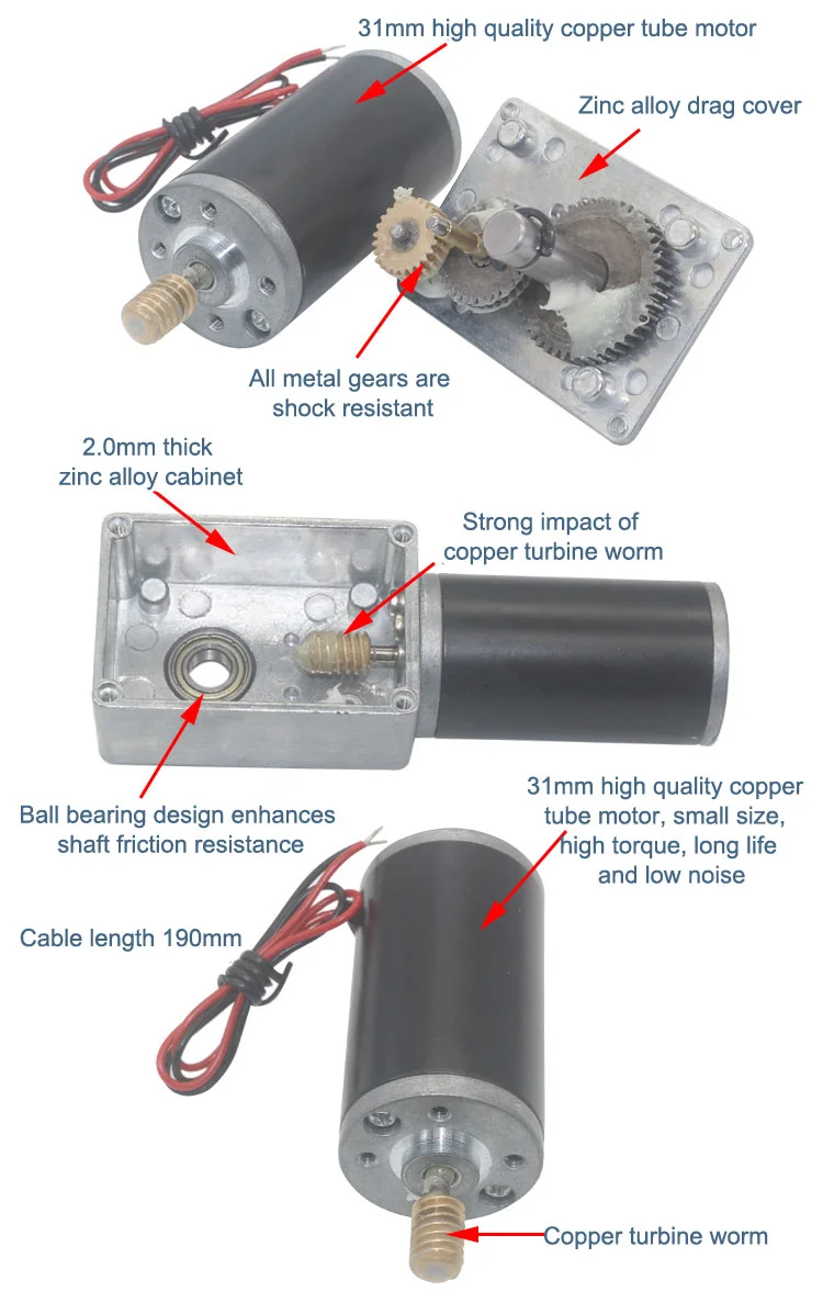 Custom 5840-31zy DC 12V Volt Gear Motor Double Shaft Long 33MM Reverse Gearbox All Metal Gears 12-470RPM Speed Motor 24V Manufacturer