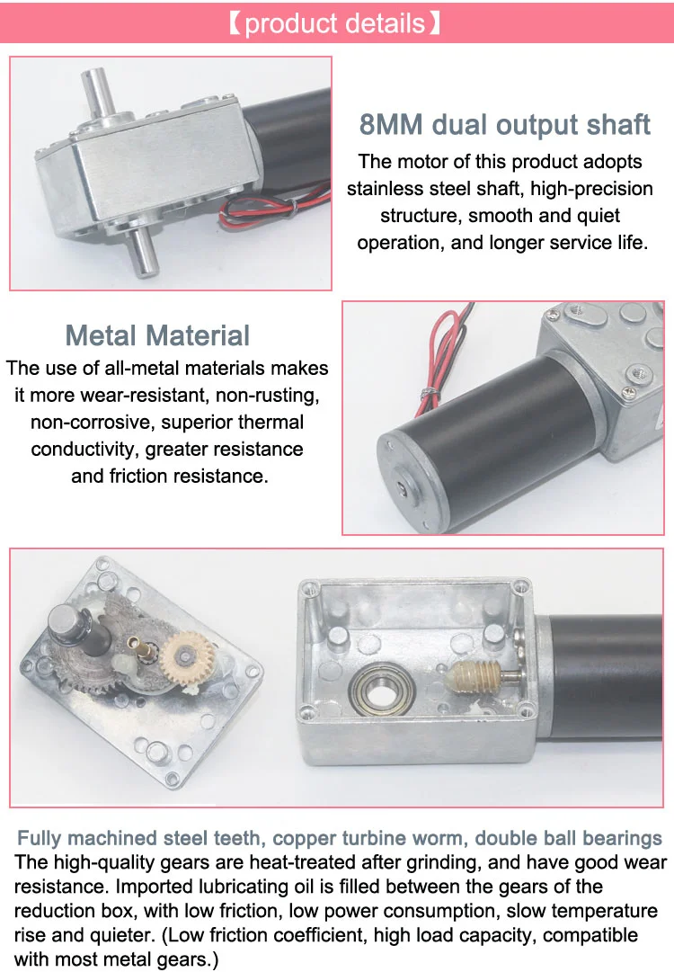 1) Before you buy, we have a reminder, please carefully check the following parameters table, you can see load torque and stall torque, if you choose one of the speed, your project loadcan not exceed load torque, otherwise the motor current will increase, the motor operating temperature increases, after a period of time, the gear will be worn, line will be burnd, the motor will be damaged, can not continue to work.