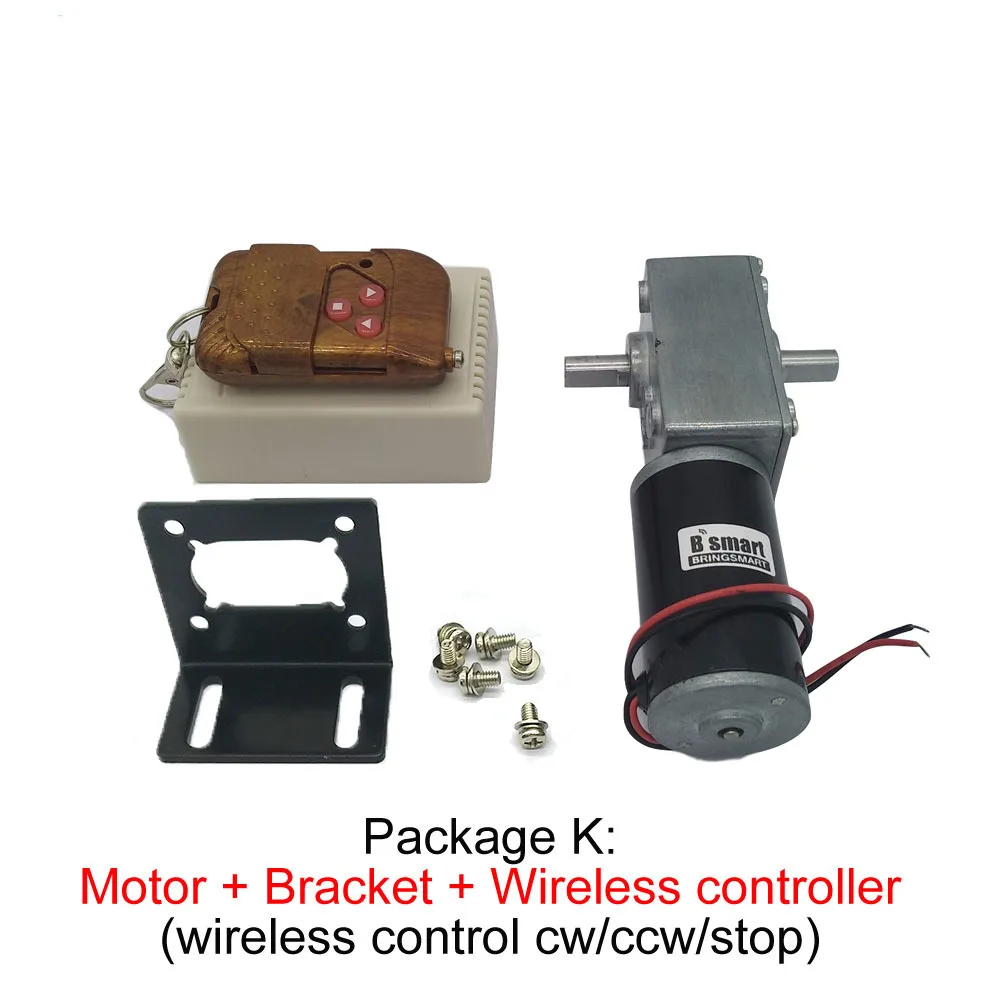 (3) 12v 12rpm+Package K, you will receive 1 piece of the motor(12v 12rpm)+Mounting bracket+Wireless controller